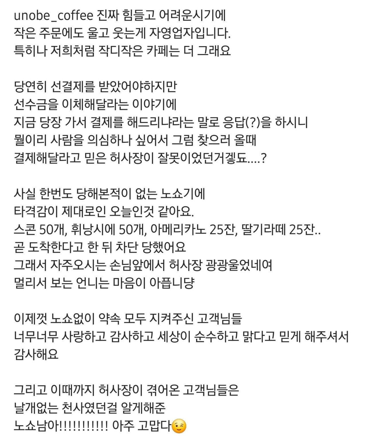 빵100개 커피 50잔 노쇼당한 카페 사장