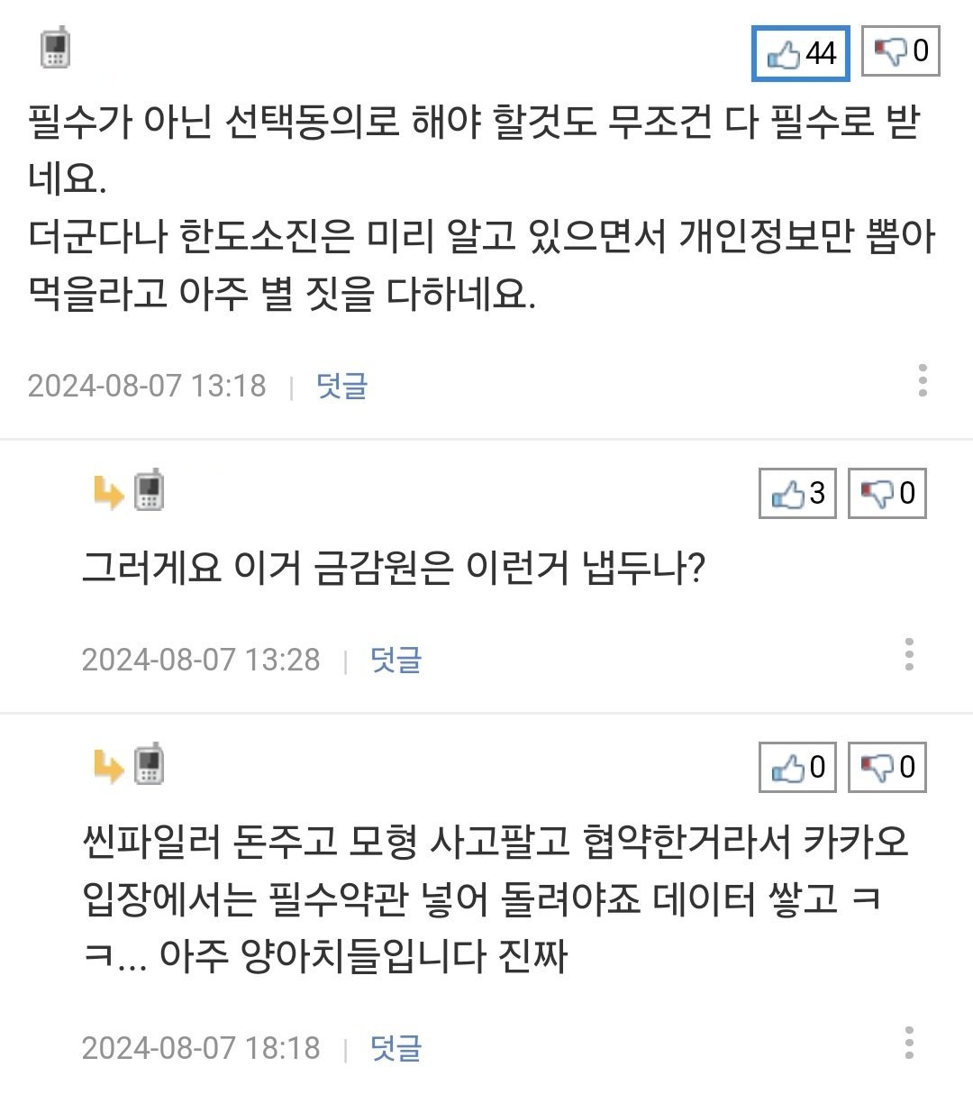 선택동의로 해야될것도 전부 필수동의로 하고 개인정보 쏙 빼먹고 짬때림